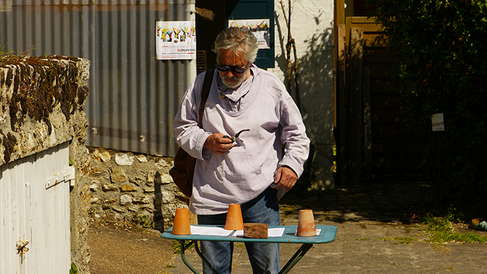 Deux artistes, Elsbeth Pluimers et René Plunian se partageaient un même lieu : le jardin pour elle et une pièce pour lui.