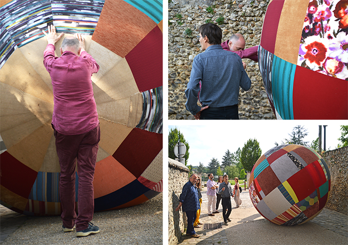 Frédéric Moulin et Éric Durrousset revisitant le mythe de Sisyphe dans les rues de Dourdan.