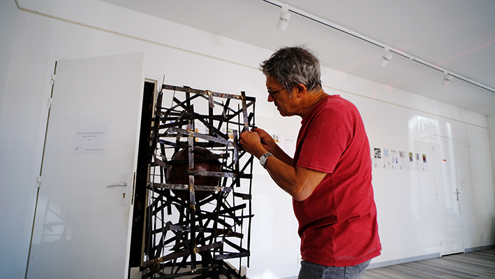 René y installe également une de ses œuvres. Chacun était invité à y proposer une œuvre, en plus du lieu où il exposait. Une manière d'en montrer un peu plus que le résumé des petites fiches.