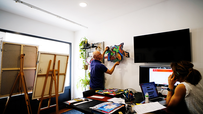 Jean-Paul Hébrard s'installe ches Mathilde, encore en plein travail. Merci à elle, comme à tous ceux qui nous ont accueillis.